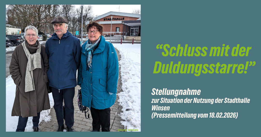 Die Grüne Ratsfraktion in Winsen/Luhe sieht mit großer Sorge die aktuellen Entwicklungen rund um die Stadthalle. Ursprünglich als gesellschaftlicher und kultureller Mittelpunkt der Stadt und ihrer Umgebung konzipiert, wird die Stadthalle diesem Anspruch nach Einschätzung der Grünen seit geraumer Zeit nicht mehr gerecht. Aktuelle Berichte und dokumentierte Zustände werfen grundlegende Fragen zur ordnungsgemäßen und rechtskonformen Führung der Einrichtung auf.